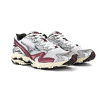 Mizuno Wave Rider 10 i fargen White/Black Sand/Syrah blander japansk heritage fra 2007 med en moderne streetwear-look. Overdelen har pustende mesh, perlemorskinnende overlays og Runbird-detaljer for et skarpt uttrykk, mens Mizuno Wave, VS-1 og U4ic gir myk, stabil demping og smidige overganger gjennom dagen. Den hvite basen med sand, svart og syrah (vinrøde) aksenter gjør skoen enkel å style til både jeans, shorts og tekniske antrekk.